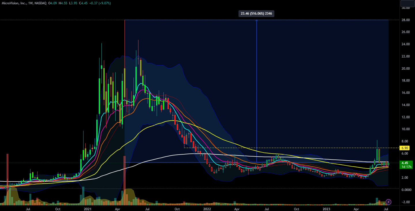 Recent technical analysis of MicroVision's stock indicates that it may be in a bull market low on the daily chart. This suggests that the stock is currently undervalued and could potentially see an upward trend in the future. This is further supported by the fact that other companies in the technology sector, such as Vicor Corporation, are showing similar trends in their stock charts.
